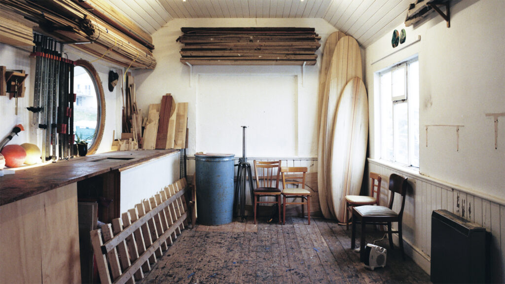 Un shaper de planches en bois filmé dans son atelier de Cornouailles. Une vie d’artisan. L’amour du travail bien fait. “Je me contente de fabriquer des planches de surf.” Toujours en musique.